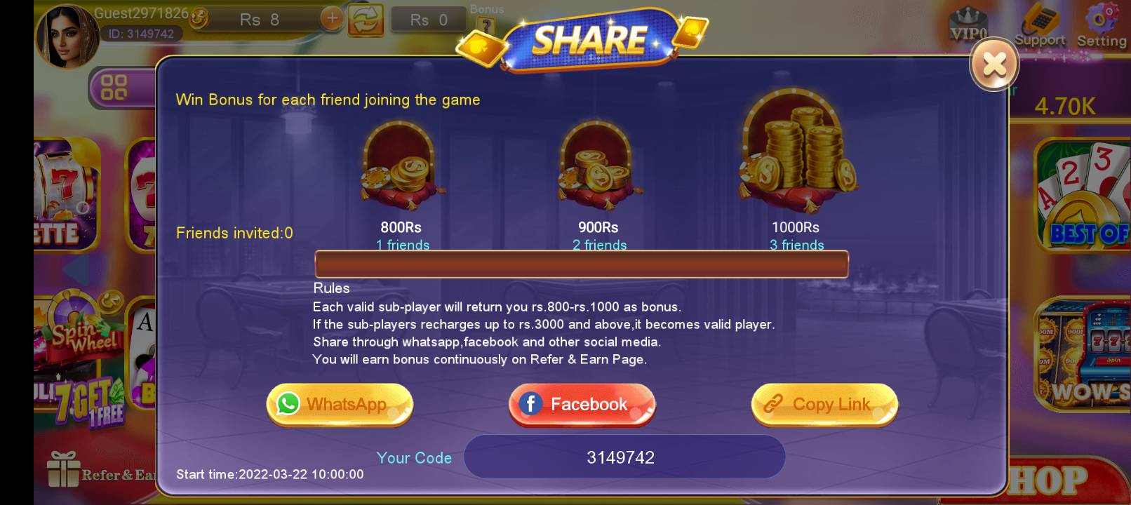 It is free to download, and you can start earning even without investing much. Players can also earn by inviting friends using their referral code, receiving cash rewards and commissions for every successful invite.
