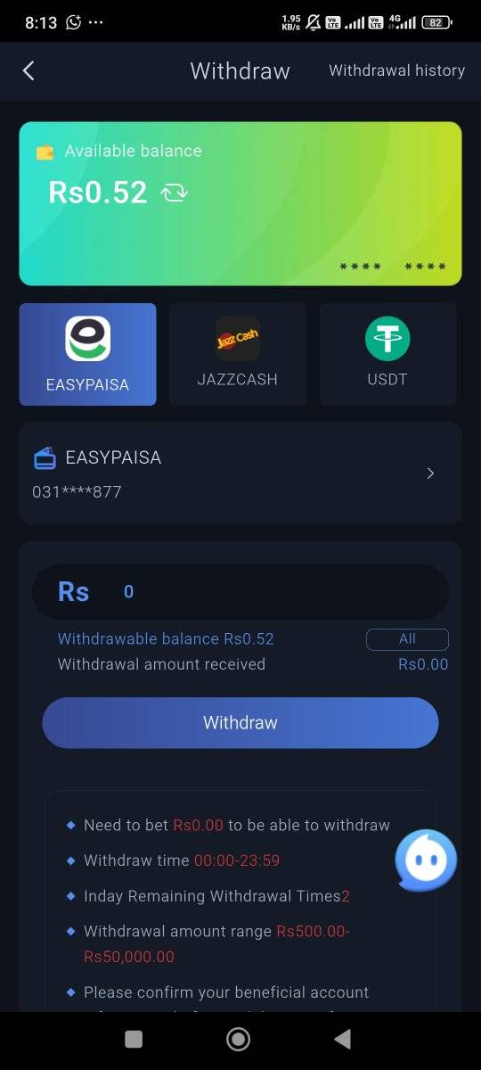 Open the app and go to the “Withdraw” section.